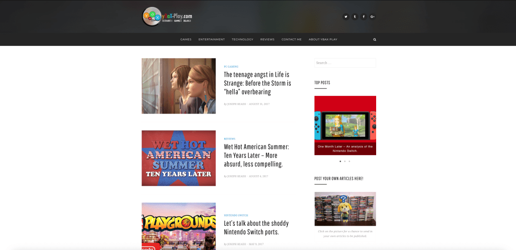 The stories range from general video game news, opinion pieces, reviews.